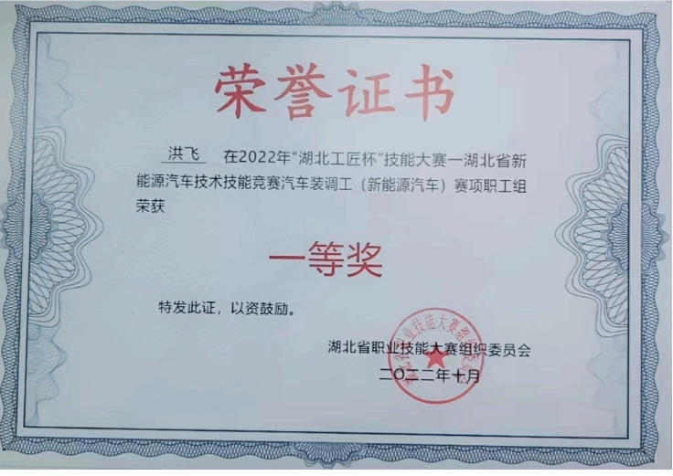 2022年湖北工匠杯新能源汽车赛项一等奖;