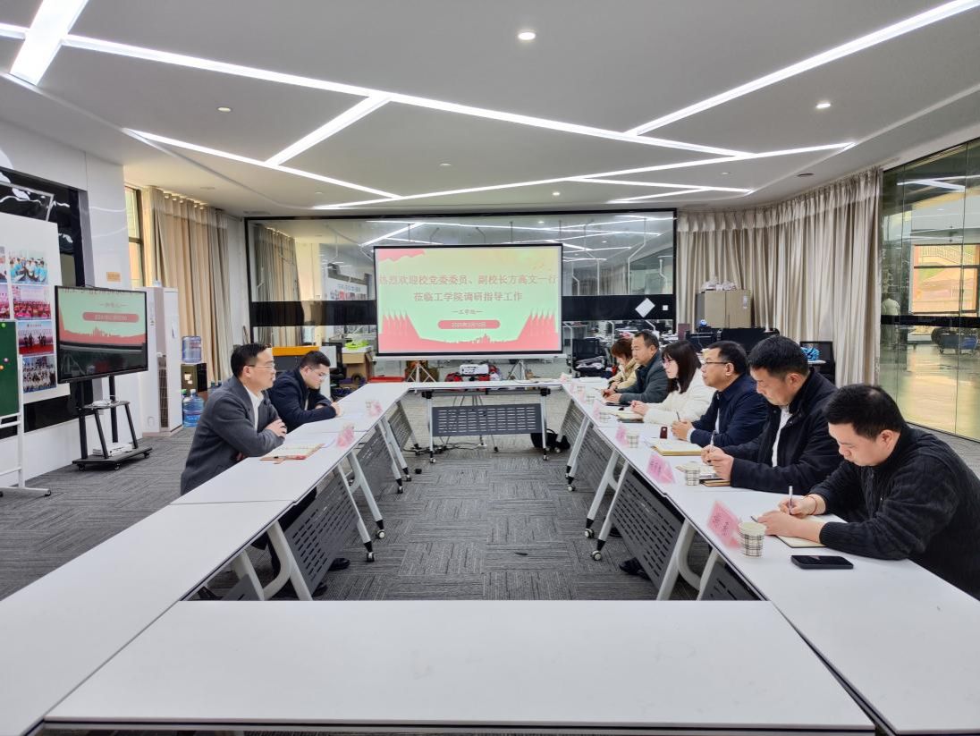 3月10日下午,公司党委委员、副董事长方高文深入太阳成集团tyc122cc开展专题调研,先后考察虚拟仿真实训基地、听取工作汇报,并就专业建设与党建工作提出指导意见。太阳成集团tyc122cc全体班子及公司办公室相关同志陪同调研。