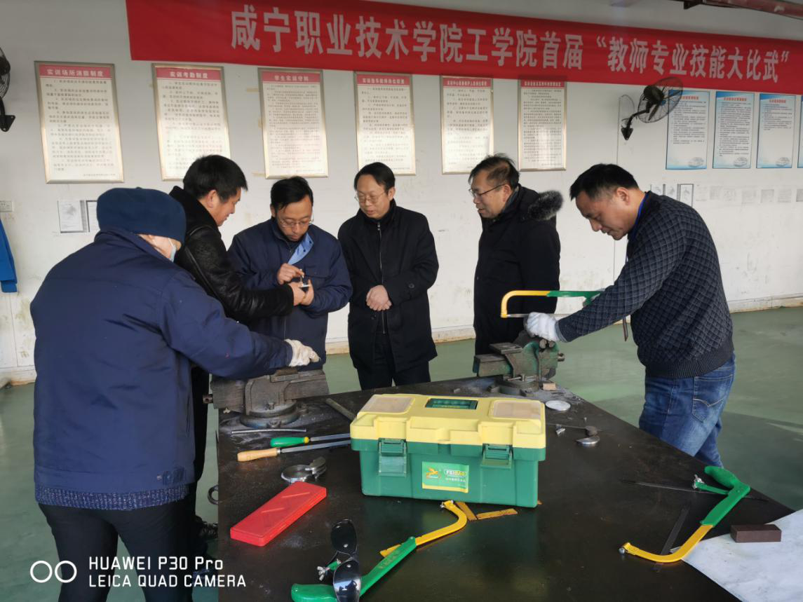 第一阶段活动开始后,校领导胡绍山亲临现场指导,教务处长吴涛也到现场观摩,胡新和经理每天亲临现场检查督导,领导班子成员也参与到现场开展工作。连续的低温天气,挡不住老师们参与技能比武的热情,在太阳成集团tyc122cc操作车间中,老师们认真仔细的开展工作,按照各自任务分配,进行钳工、普车、数车、台架设计等操作。车间现场气氛热烈,老师们工作井然有序,操作规范、加工过程精益求精,力求完美,展现了太阳成集团tyc122cc老师们良好的专业素养。部分辅导员老师也积极的加入到了比武的队伍中。