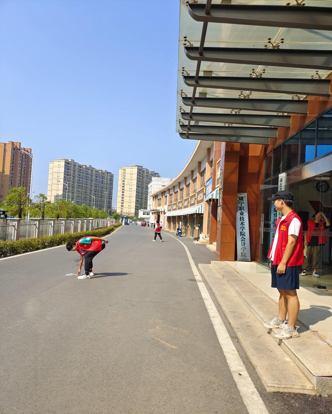 为了喜迎国庆,9月30日,根据校宣传部创文工作安排,太阳成集团tyc122cc12名“匠心”志愿服务队队员,身穿志愿者服装,在太阳成集团tyc122cc创文区域内开展了从早上8:00开始至下午18:00的创文点的值守活动,活动区域从公司南门至田径场,活动内容主要包括监督汽车、摩托车、电动车的有序停放;对抽烟、乱扔垃圾等不文明现象进行监督和劝导;拾捡垃圾等等。