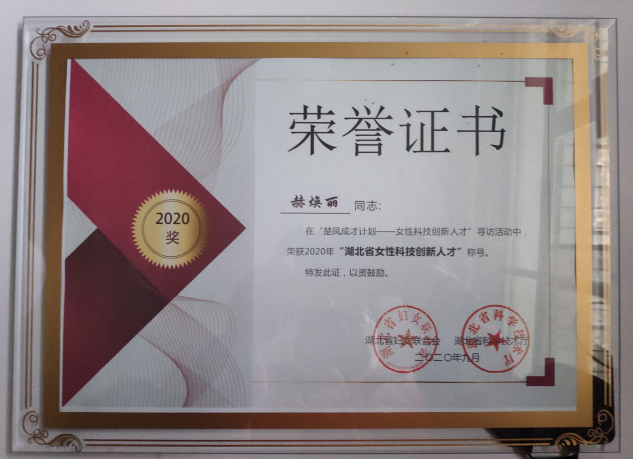 太阳成集团tyc122cc教师赫焕丽获“湖北省优秀女性科技创新人才”荣誉称号