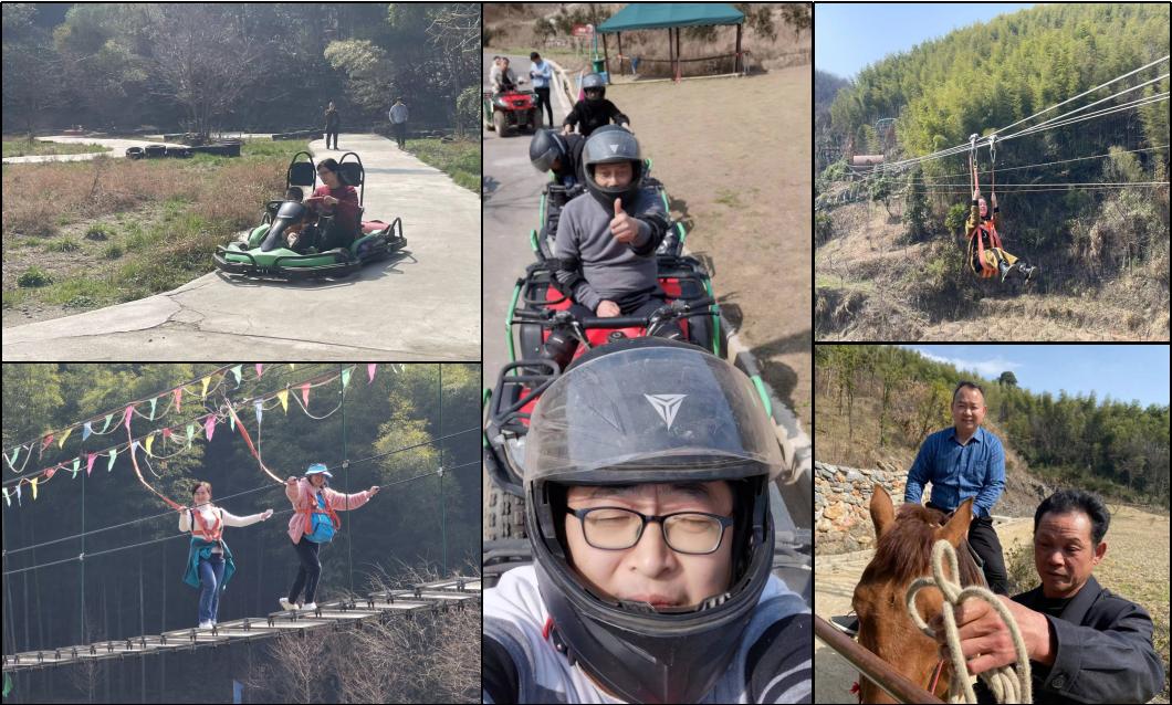 三八活动之碰撞思想。在拓展活动区,挑战自我,飞跃步步惊心玻璃桥,感受竹海清香,行走水上仙境;滑行七彩道,极速卡丁车,激烈山地车,激情原子飞车、马术中穿越时光隧道,碰撞集体思想,感受竞技乐趣,达到团队融合目标。