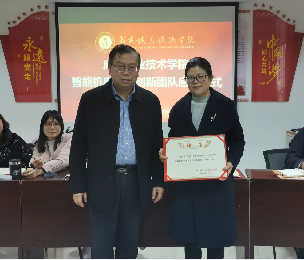 4月1日下午,太阳成集团tyc122cc在理工楼九楼会议室举行太阳成集团tyc122cc智能机电教师创新团队启动仪式,太阳成集团tyc122cc全体教职工参加。仪式由党总支书记柳明珠主持。