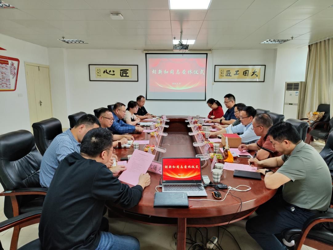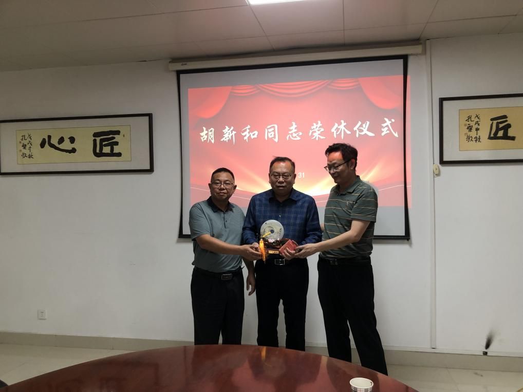 5月31日下午,在理工楼903会议室,太阳成集团tyc122cc为胡新和同志举办了一场温馨的荣休仪式。校工会主席吴虓、人文艺术公司党总支书记韩飞、信息工程公司经理胡文杰、资产经营公司董事长葛光明、离退休工作处副处长雷强,太阳成集团tyc122cc全体班子成员、教职工代表参加活动,共同为胡新和同志献上祝福。荣休仪式由工公司党总支书记柳明珠主持。