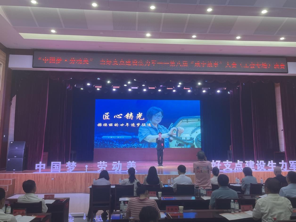 6月4日下午,由咸宁市总工会主办的第八届“咸宁故事”大赛(工会专场)决赛在咸宁老年大学拉开帷幕。大赛以“中国梦,劳动美,当好支点建设生力军”为主题,旨在弘扬主旋律,传播正能量,通过讲述全市人民真实的奋斗拼搏的好故事,为我市打造武汉都市圈绿色发展重要增长极凝聚奋斗力量。经过激烈角逐,公司选手陈佳乐最终荣获得三等奖,公司同时荣获优秀组织奖的好成绩。
