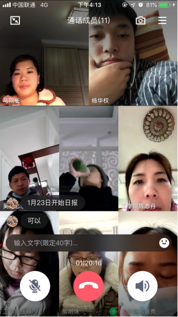 二是坚守辅导员职责,员工情况跟踪做实做细。自1月22日接到上级疫情防控工作指示以来,员工支部所有成员每天严格统计员工身体健康状况,在工作中,陈志丹老师创新统计方法,通过微信接龙的方式,可以更加准确细致地了解员工的健康状况。这期间,辅导员杨华权老师、施江天老师班上相继发现两例发热疑似情况,他们第一时间向分管领导汇报情况,耐心细致地稳定员工情绪,协调家长和当地政府和医院帮忙快速就医治疗,并保持信息跟踪,每天通过QQ和电话给予关心、鼓励和安慰,和员工一起积极面对,最终战胜疾病,治愈出院。