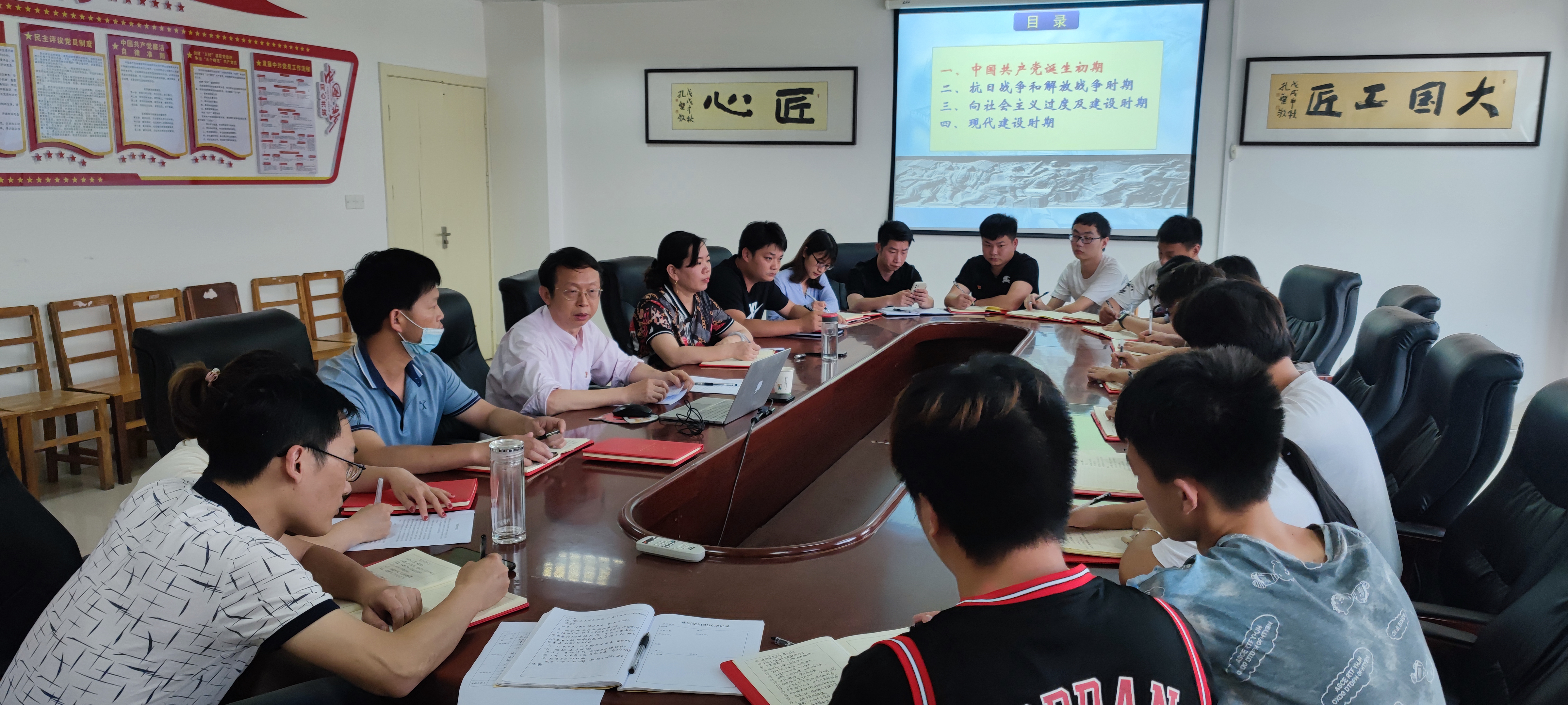 胡绍山同志从中国共产党诞生初期,抗日战争和解放战争时期向社会主义过度及建设时期到现代建设时期,一百年的使命担当,为人民服务的初心不变等给全体人员讲了一堂生动的党课。党课深刻阐述了党史学习教育对于抢抓公司发展机遇期的重大意义,要求全院每一位教职员工要提高政治站位,不忘入党,执教初心,身先士卒,凝神聚力,开拓创新。