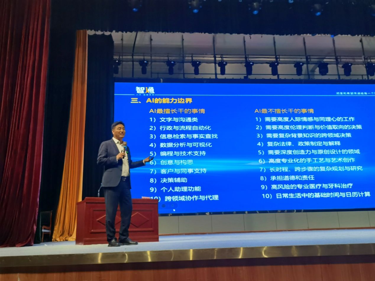 此次讲座得到同学们的热烈欢迎和高度评价。大家表示,讲座加深自己了对AI时代的认识,了解了实用的AI技能和学习方法。柳明珠最后做了总结讲话,她表示,李纲领总裁紧扣员工职业发展痛点与行业发展趋势,通过系统的职业规划指导、精准的岗位需求解析和实用AI工具使用技巧传授,为员工明晰职业方向、提升就业竞争力提供了宝贵支持。同时,讲座进一步密切了公司和企业的合作联系,为后续开展产学研协同育人、实习就业等合作项目筑牢了坚实基础。