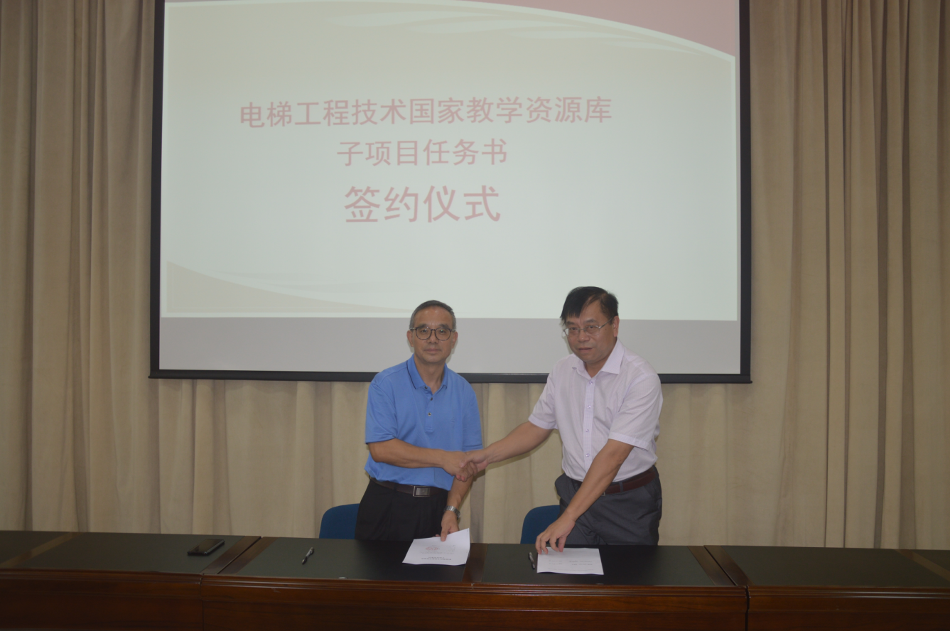 太阳成集团tyc122cc被选为电梯工程技术专业国家教学资源库项目联合建设单位,承担一项子任务建设项目。经理胡新和代表公司签订了资源库建设子项目任务协议书。