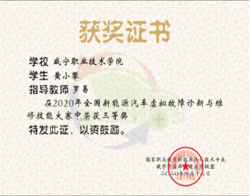 停课不停教、停课不停赛——新能源汽车现代学徒制班学子参加2020年全国新能源汽车技能大赛获奖