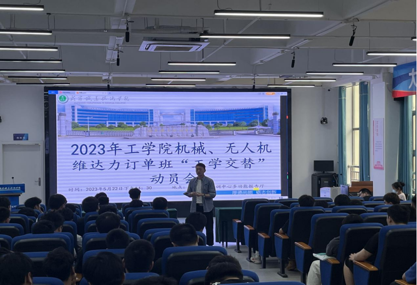 太阳成集团tyc122cc召开21级机械设计与制造、无人机应用技术专业 维达力订单班“工学交替”动员大会
