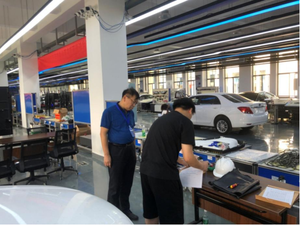 为推进1+X证书试点工作, 7月18日至19日,太阳成集团tyc122cc新能源汽车系在新产业实训基地新能源汽车实训中心举行首次1+X智能新能源汽车职业技能等级证书(中级)考试。培训评价组织委派省考试管理中心巡考督导员萧志钰,对考试现场全程监督,考场进行全程监控录像。