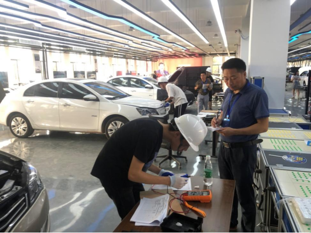 智能新能源汽车职业技能等级证书考试以实操考核为主,每个考生2小时,四个模块:新能源汽车工作安全与作业准备;新能源汽车电子电气系统检测维修;新能源汽车空调系统检测维修;新能源汽车舒适系统检测维修。采用“考培分离”模式,以考点院校交叉监考的方式进行。