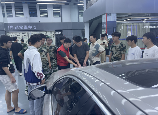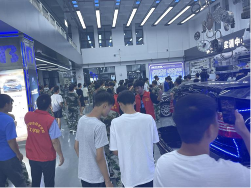 讲座结束后,员工有序前往公司新能源汽车实训中心参观,同学们对实训中心教学设备、实训场地表现出极大的好奇心,专业老师对实训中心各区域的设备与相关教学进行了逐一介绍,解答同学们的疑惑,师生间展开了深入的交流,现场气氛热烈。