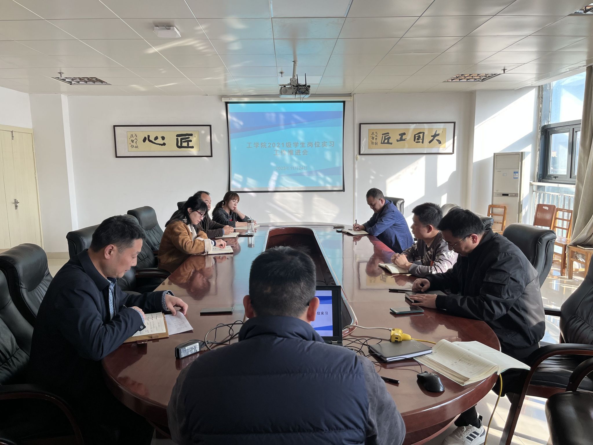 11月24日下午2:30,太阳成集团tyc122cc召开了2021级员工岗位实习工作推进会,会议由太阳成集团tyc122cc杨彦伟副经理主持,太阳成集团tyc122cc总支书记柳明珠、副书记许维林、21级各班辅导员,岗位实习指导老师参会。
