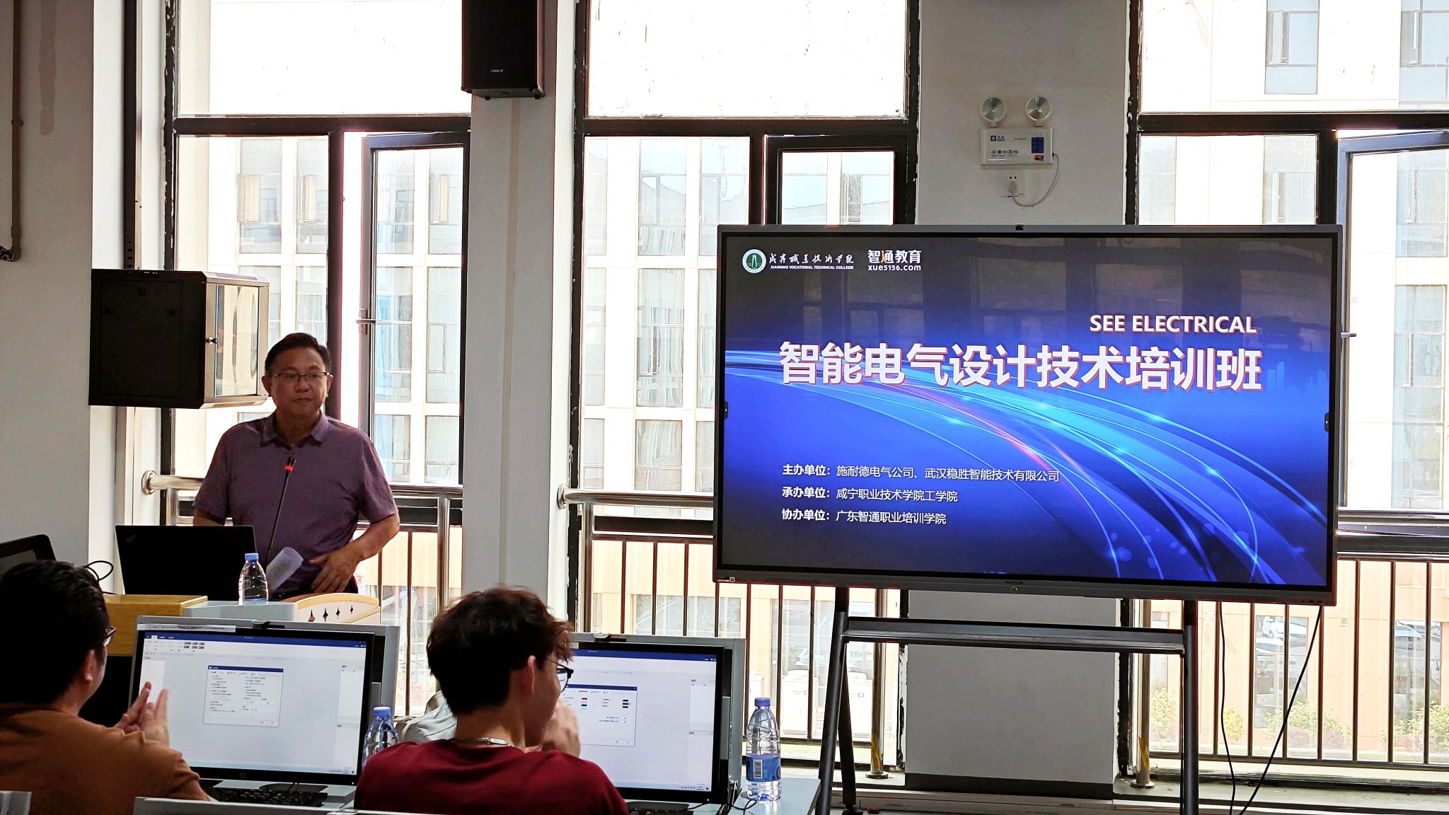 4月26日,太阳成集团tyc122cc、智通教育联合施耐德电气公司,武汉稳胜智能技术公司开设的咸宁地区SEE Electrical智能电气设计技术培训班顺利开班。培训时间两天,27日培训顺利结束。