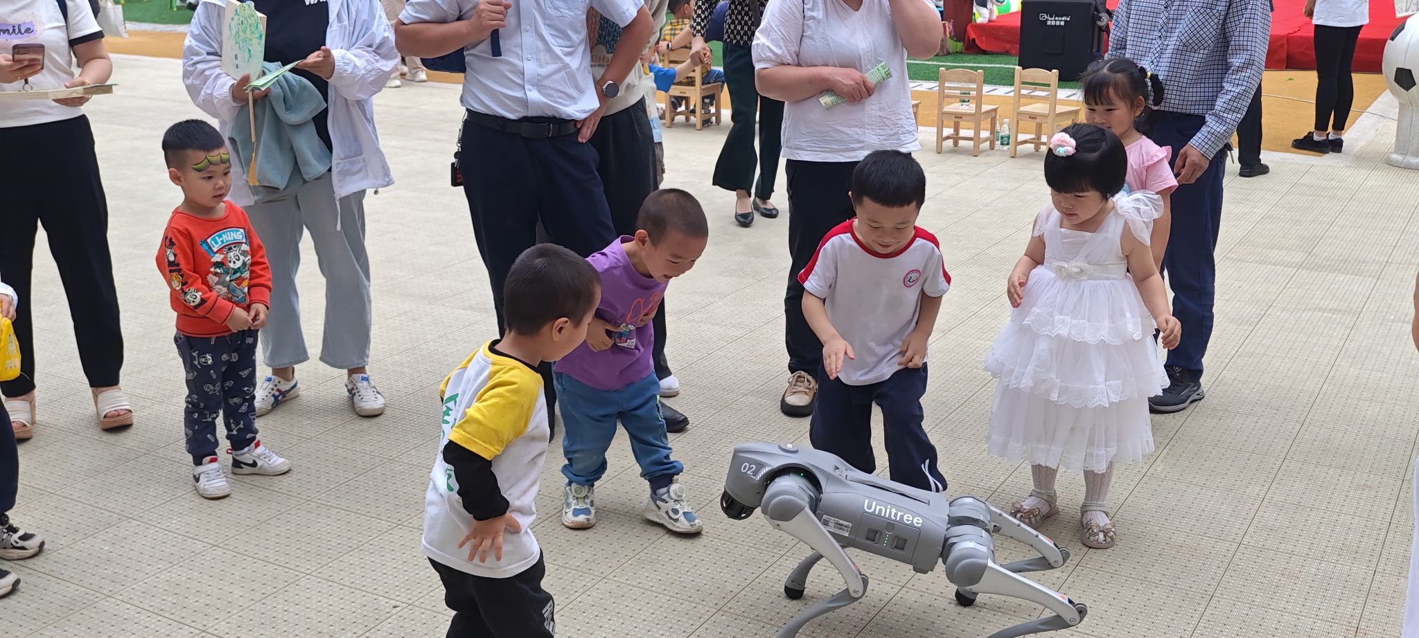 活动现场,工公司党总支书记柳明珠亲自带队,为现场观众带来了一场别开生面的视听盛宴。当阿尔法机器狗登场时,引来台下观众们的拍照声连连和掌声不断;机器狗灵巧的动作和惟妙惟肖的表演让在场的每位观众惊叹不已,无不感觉科技的进步和无穷的魅力。