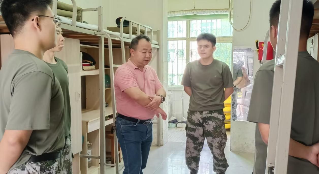 图一:应孔建老师带领宿舍长参观国防教育公司员工宿舍