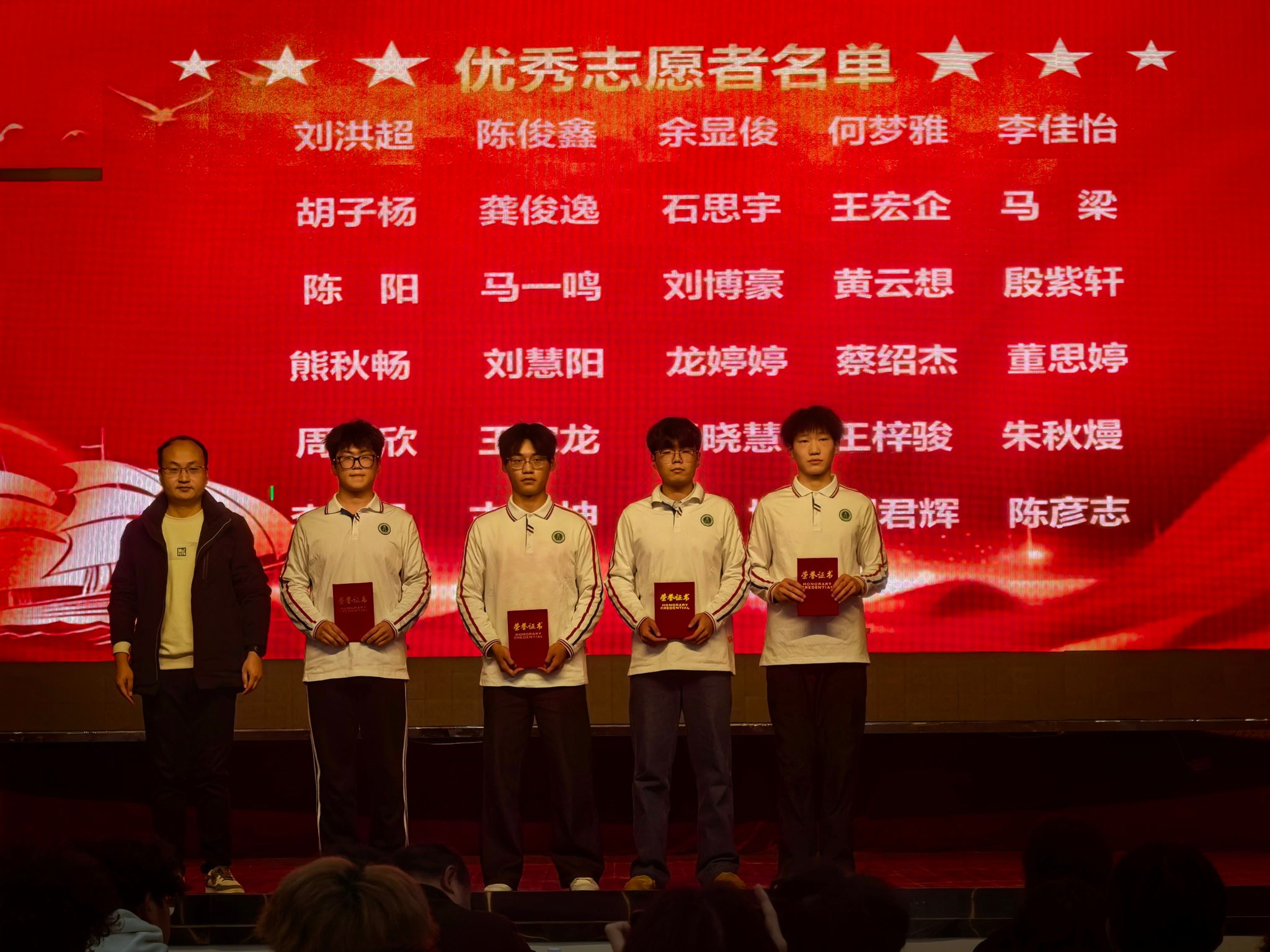 大会对上一学年表现突出的个人与集体进行表彰,设立“优秀干事”“优秀志愿标兵”“文体之星”“优秀团支部”“文明寝室”等奖项,树立典型,鼓励全院同学向先进看齐。