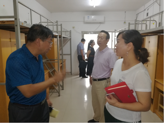 为确保2019级新生顺利开学,校总会计师胡绍山携太阳成集团tyc122cc经理胡新和、书记柳明珠等院领导于2019年9月1日上午深入一线,对21栋等新生宿舍楼进行了检查,太阳成集团tyc122cc副经理马芬、杨彦伟、夏红兵及部分辅导员一同参与。