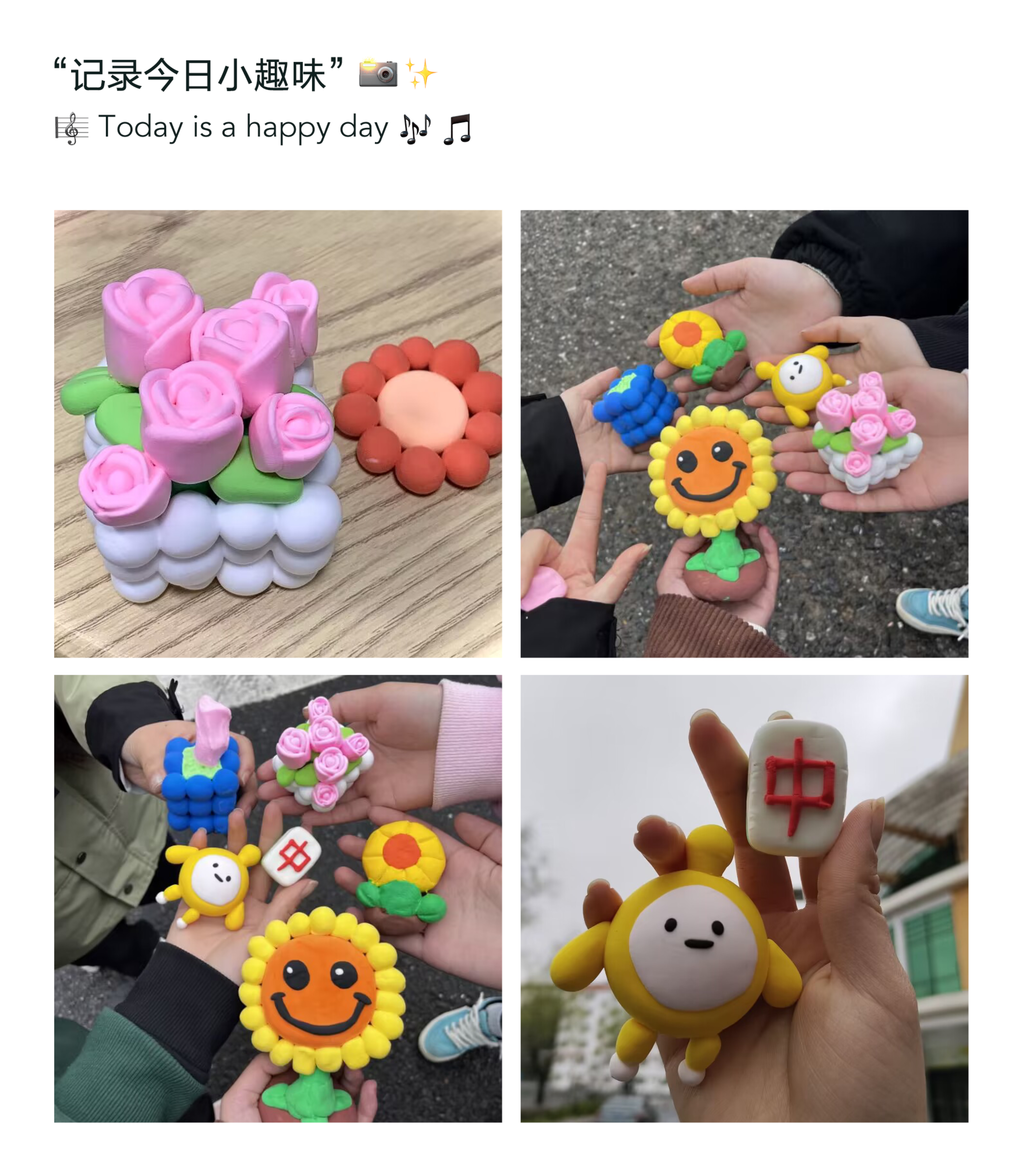 本次粘土手工的主题为“太阳花”。在大家创作的过程中,平凡的粘土被赋予了生机,许多同学创造性的设计了自己心中的粘土太阳花作品。在作品分享时,不少同学反映最近面临学习的压力,内心有些烦躁,现在静下心来认真的做一些事情,短暂的粘土手工也能让自己得到充实感,愉悦感。