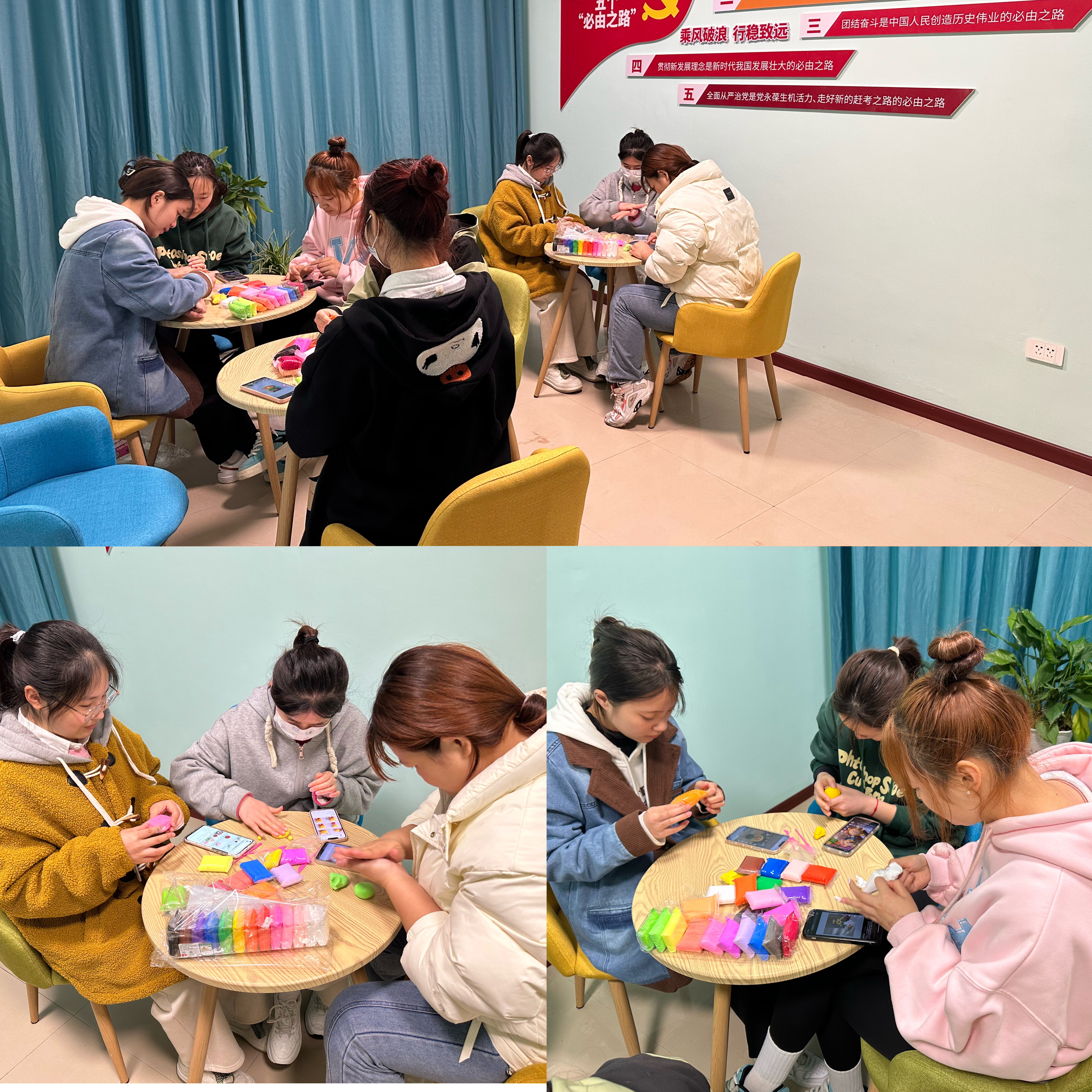 在两个小时的团体活动中,同学们沉浸在粘土手工的心流,感受着全身心的减压放松。