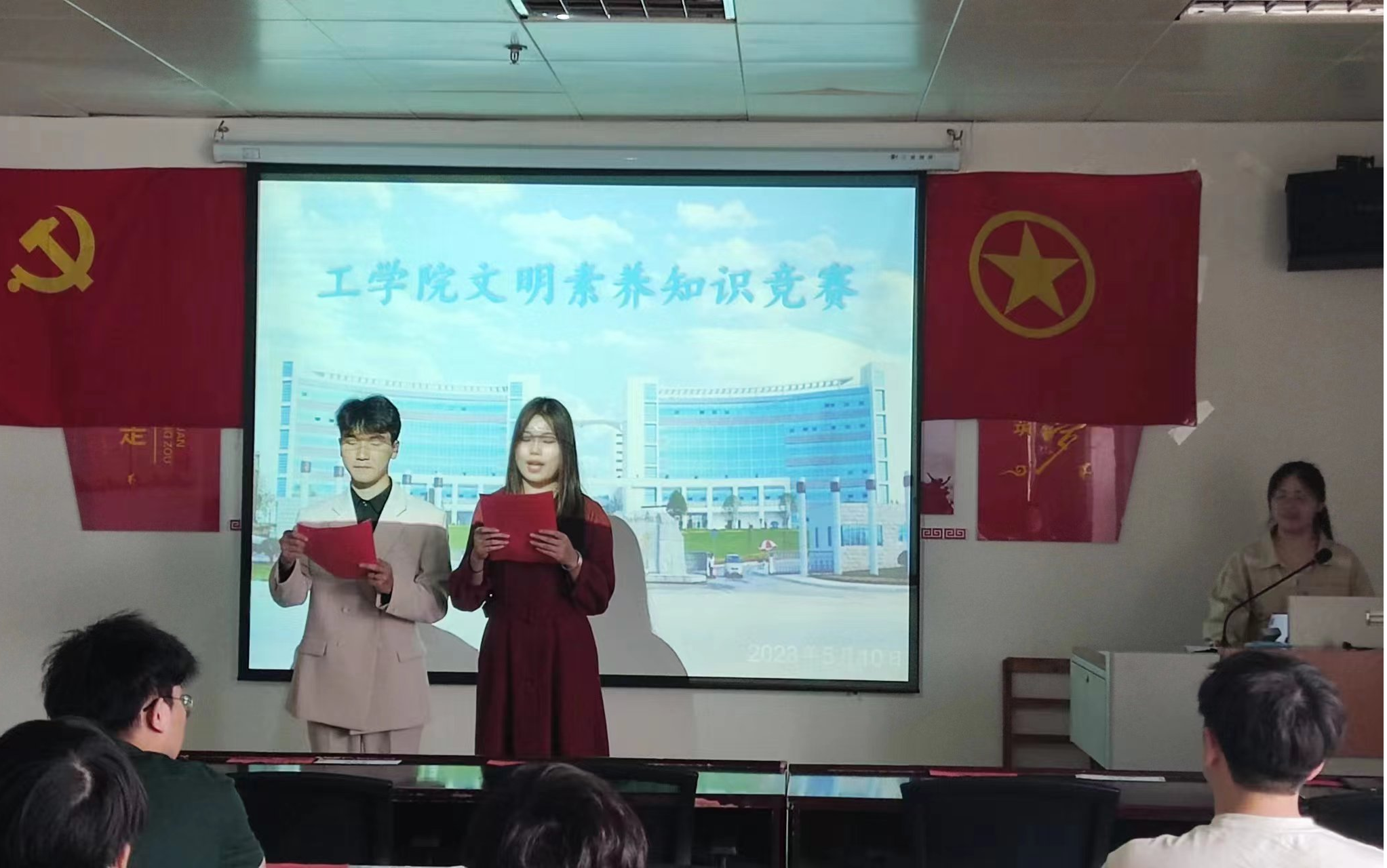 此次知识竞赛设必答题、抢答题两个环节,内容涵盖文明校园创建、志愿服务、公民道德建设、文明礼仪常识等。比赛中,各支队伍互不相让,大家你争我夺,拼手速,比脑力,竞争激烈,分数焦灼变幻。经过激烈角逐,最终第四组张才茂、覃崇耀荣获一等奖,第八组李建博、刘伟荣获二等奖,第五组陈韩、柯于朋荣获三等奖。参赛队伍在竞赛过程中磨砺了自己,也加深了对文明礼仪相关知识的了解和认识。