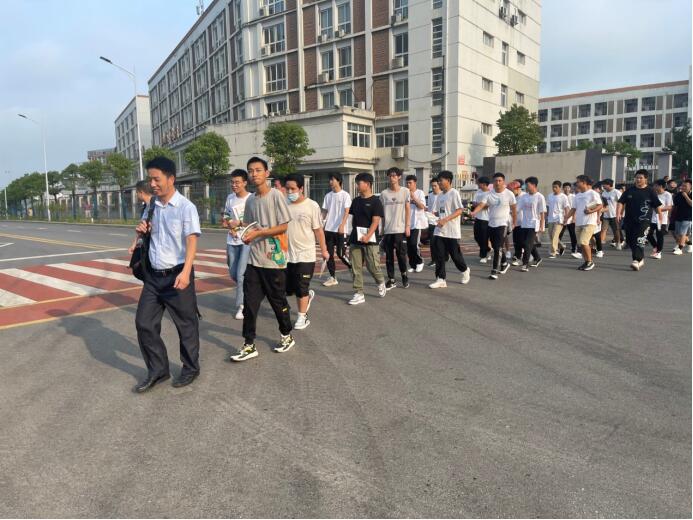 图3 员工在老师带领下列队前往新基地上课