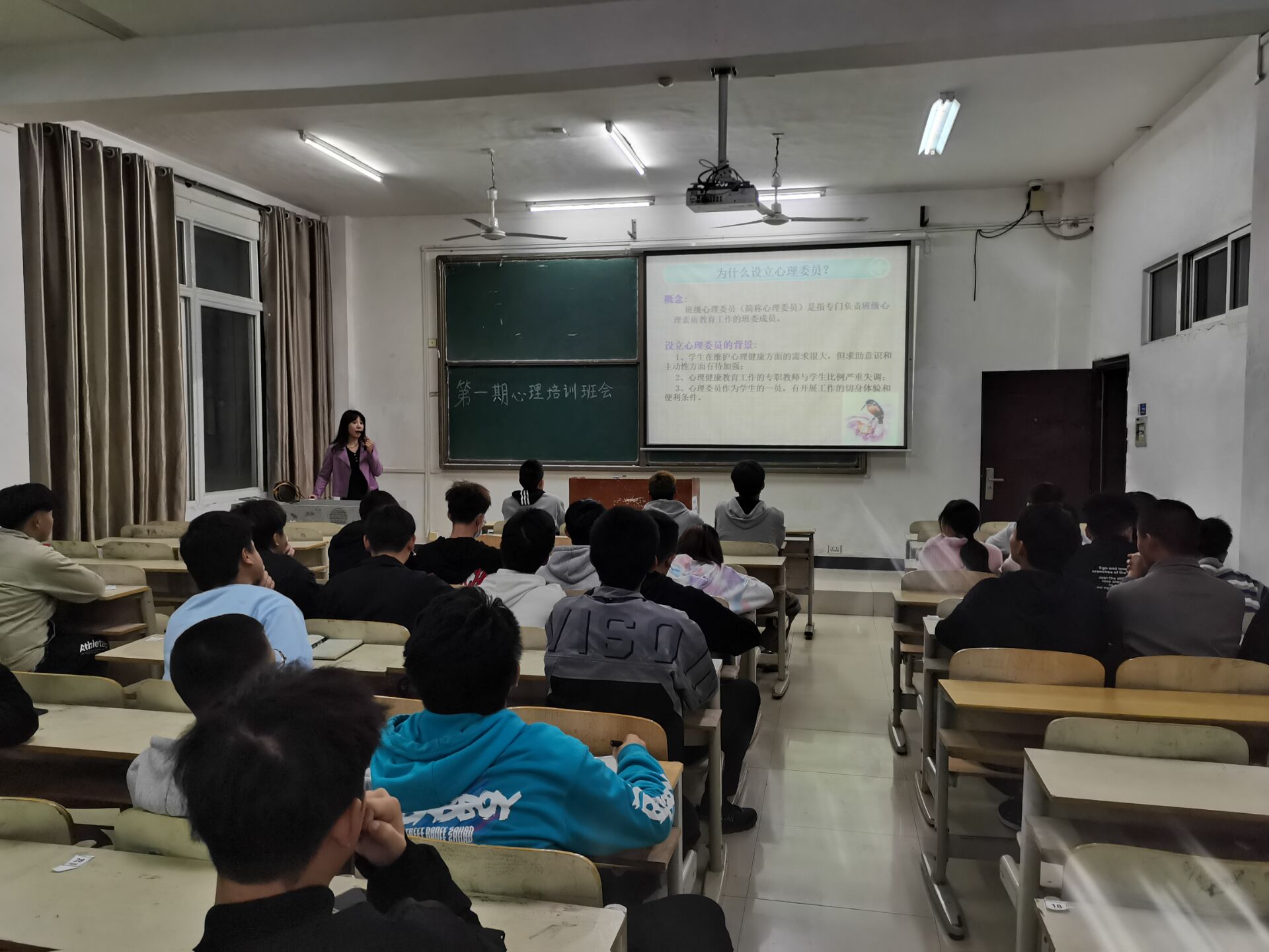 此次培训重点讲解心理委员角色定位,结合实例,进一步明确了各班心理委员的工作职责。要求大家明确自身责任,了解自身服务角色,进一步贴近同学实际,深入了解同学们的心理健康状况,对有心理问题的员工及时干预,做到早发现、早报告、早干预。同学们在认真听取老师讲解的同时也积极回答问题,培训现场气氛融洽。