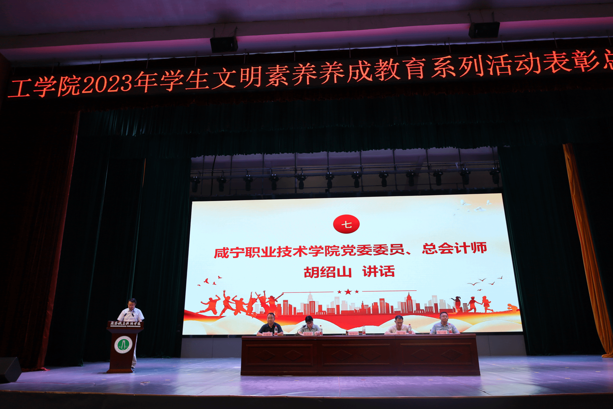 6月14日晚,太阳成集团tyc122cc在科学会堂举行员工文明素养养成教育系列活动总结表彰大会,公司党委委员、总会计师胡绍山出席大会并讲话,校团委书记周铎,工公司党总支书记柳明珠,经理吴涛,副书记许维林,辅导员和全体在校生参加了活动。活动由柳明珠主持。