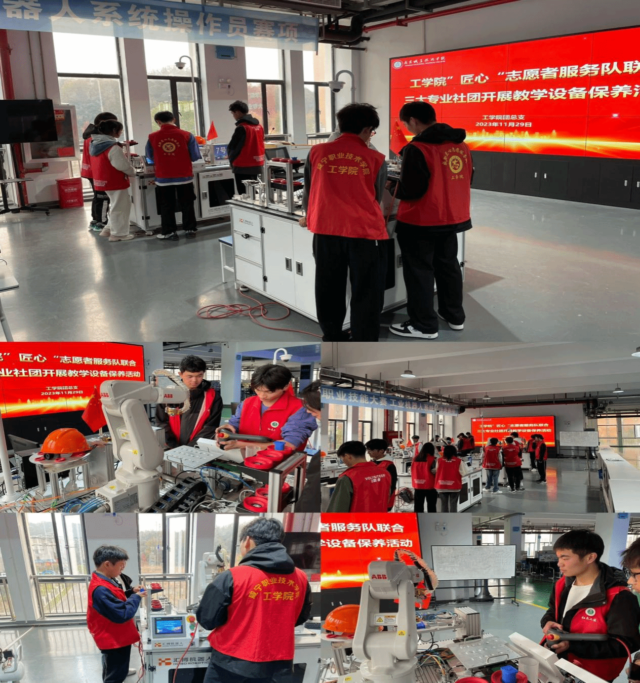 此次活动分小组进行,根据专业优势合理分工,积极协调配合,师生身穿红马甲手拿清洁工具对实训设备进行全面细致的清洁检查,专业社团师生用所学的专业技能知识对实训设备进行日常维护与调试保养,在大家积极努力的劳动后,实训设备变得焕然一新。