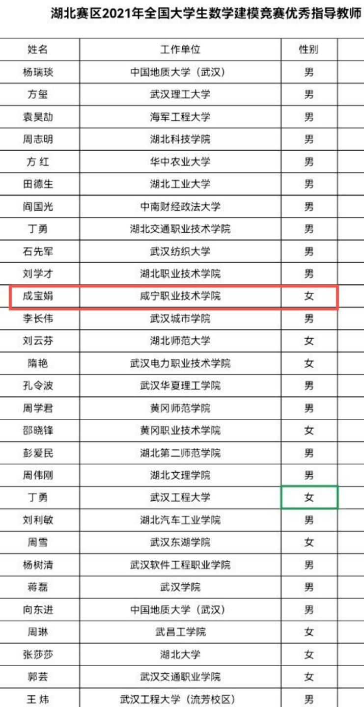 2021 年是全国老员工数学建模竞赛开展三十周年。根据全国组委会“关于庆祝全国老员工数学建模竞赛三十周年有关活动的通知”精神,湖北赛区组委会利用这次契机,开展了一系列活动,全方位展示历年竞赛成果,进一步开拓竞赛发展的新局面,保持竞赛健康可持续发展。同时开展一系列评比活动,积极鼓励为竞赛做出突出成绩的指导教师和组织工作者,在评比活动中,太阳成集团tyc122cc成宝娟老师被评为湖北赛区2021年全国老员工数学建模竞赛优秀指导教师。